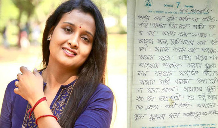 বৃষ্টি খাতুনের ডায়েরিতে লেখা আছে, ‘আমার নাম বৃষ্টি। আমি ৭ম শ্রেণীতে পড়ি। আমরা তিন বোন। আমি সবার বড়। আমার বয়স ১১ বছর। আমার অন্য দুটি বোনোর নাম ঝর্ণা, বর্ষা। আমার বাবার নাম শাবরুল আলম সবুজ। আমার মায়ের নাম শাহনাজ পারভীন (বিউটি খাতুন)। আমার স্কুলের নাম বনগ্রাম মাধ্যমিক বিদ্যালয়। আমার বাড়ি বনগ্রাম। জেলা কুষ্টিয়া। থানা খোকসা। আমার স্কুলে ২০০ ছাত্র-ছাত্রী। এর মধ্যে আমাদের ক্লাসে ছাত্রী বেশি। আমাদের স্কুলে সুকুমার স্যঅর আমাকে খুব ভালোবাসেন।’