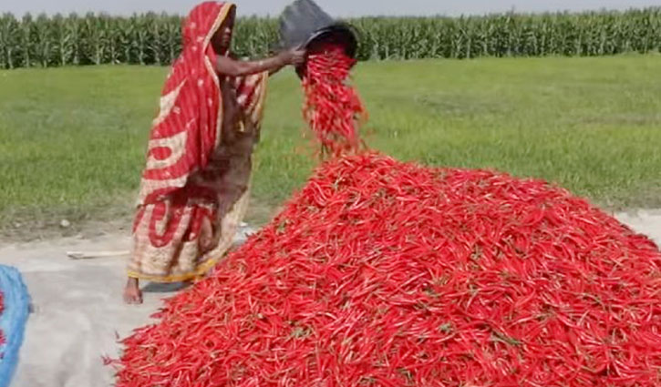 সিরাজগঞ্জে যমুনায় জেগে ওঠা ছোট-বড় বালুচরে মরিচের ব্যাপক চাষ হয়েছে। ভালো দামও পাচ্ছেন কৃষকেরা। চলতি বছরে উৎপাদনের লক্ষ্যমাত্রা নির্ধারণ করা হয়েছে ১৬ হাজার ৪৮৮ মেট্রিক টন। যার বাজার মূল্যে প্রায় শতকোটি টাকা। সিরাজগঞ্জ কৃষি সম্প্রসারণ অধিদপ্তরের (উপ-পরিচালক) বাবলু কুমার এই তথ্য জানিয়েছেন।