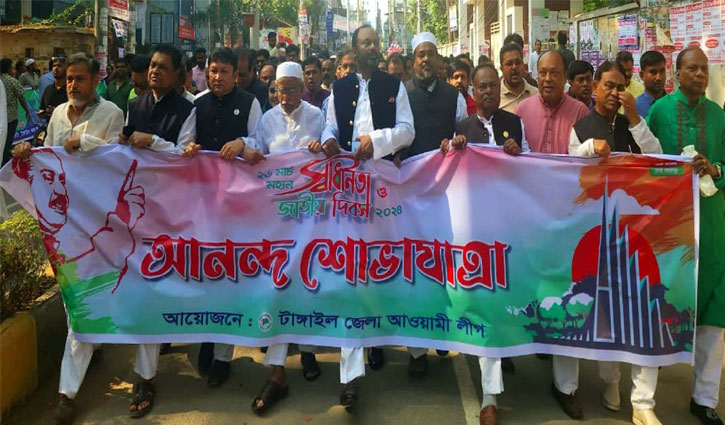 স্বাধীনতা দিবসে টাঙ্গাইলে আনন্দ শোভাযাত্রা বের হয়। ছবি: রাইজিংবিডি