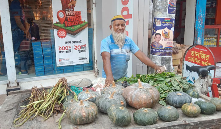 সবজি বিক্রি করছেন হারুন অর রশীদ হাওলাদার