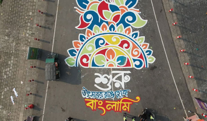 সরেজমিনে গিয়ে দেখা যায়, বিভিন্ন রঙে রাঙানো পুরো সড়ক। শিশু-কিশোরসহ বিভিন্ন বয়সী মানুষ আলপনা দেখতে ভিড় করছেন। তাদের মধ্যে প্রাণখোলা বৈশাখের উৎসব। দুপুরের রোদেও অনেকেই সেখানে সেলফি তুলতে দেখা গেছে।