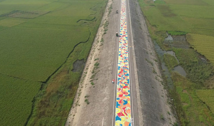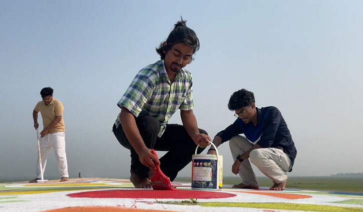 আলপনার রঙে রঙিন হাওরের সড়ক