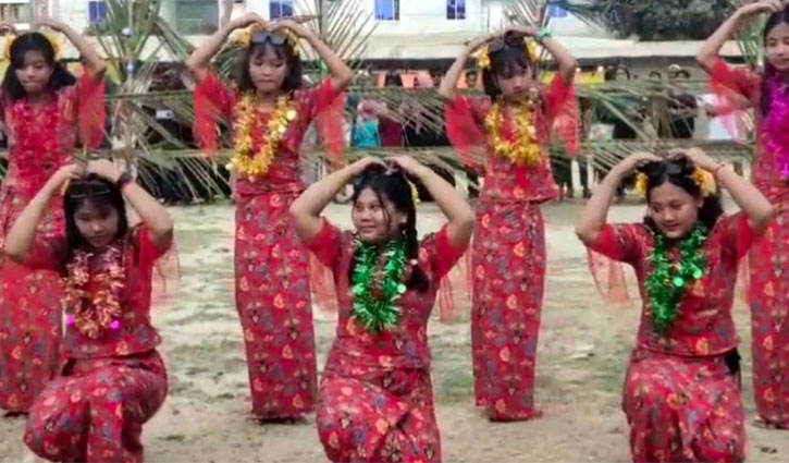 সরেজমিনে দেখা গেছে, মাঠের মধ্যে রাখা হয়েছে একটি সাজানো গোছানো নৌকা। নৌকার মধ্যে রাখা হয়েছে পানি। আর এ পানি একে অপরের গায়ে মারছেন রাখাইন কিশোর কিশোরীরা। এসময় নাচে গানে মাতোয়ারা হয়ে উঠে কিশোর-কিশোরীরা। এদিকে নতুন বছরকে স্বাগত জানাতে বাড়িতে বাড়িতে ফুল দিয়ে সাজানো, বিহারে মোমবাতি প্রজ্বলন এবং প্রার্থনা করা, নতুন পোশাক পরাসহ নানা আয়োজন করে রাখাইনরা।