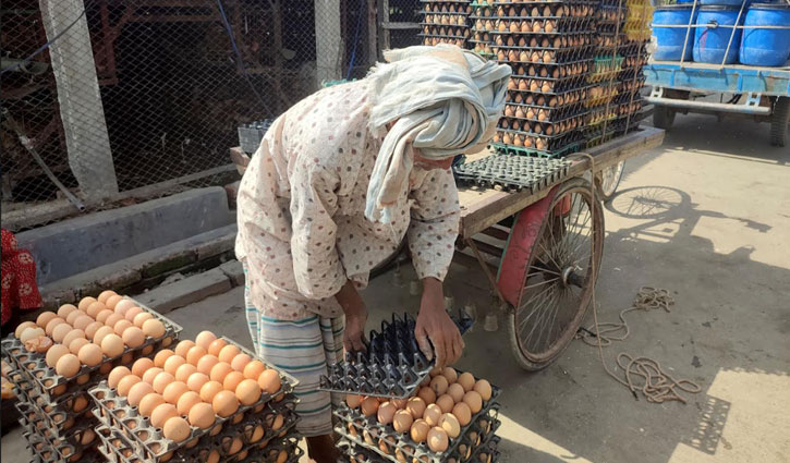 খামার থেকে সংগ্রহ করা মুরগির ডিম বাজারে নেওয়ার প্রস্তুতি চলছে বিক্রির জন্য