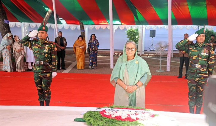 টুঙ্গিপাড়ায় বঙ্গবন্ধুর সমাধিতে প্রধানমন্ত্রীর শ্রদ্ধা