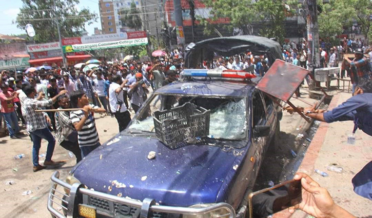 নারায়ণগঞ্জে শিক্ষার্থীদের সঙ্গে পুলিশের সংঘর্ষ চলছে