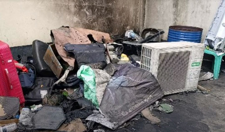 সরেজমিনে গিয়ে দেখা যায়, মূল ফটক দিয়ে ঢুকেই থানার ভবনের সামনে স্তুপ করে রাখা হয়েছে পুড়ে যাওয়া জিনিসপত্র। সেখানে পুলিশের পোশাক, ট্রাঙ্ক, গাড়ি, এসিসহ থানার ব্যবহৃত বিভিন্ন পোড়া জিনিস একত্রে রাখা হয়েছে।