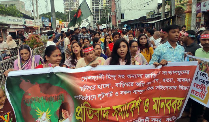 হিন্দু সম্প্রদায়ের উপর হামলার প্রতিবাদে দেশব্যাপী মিছিল