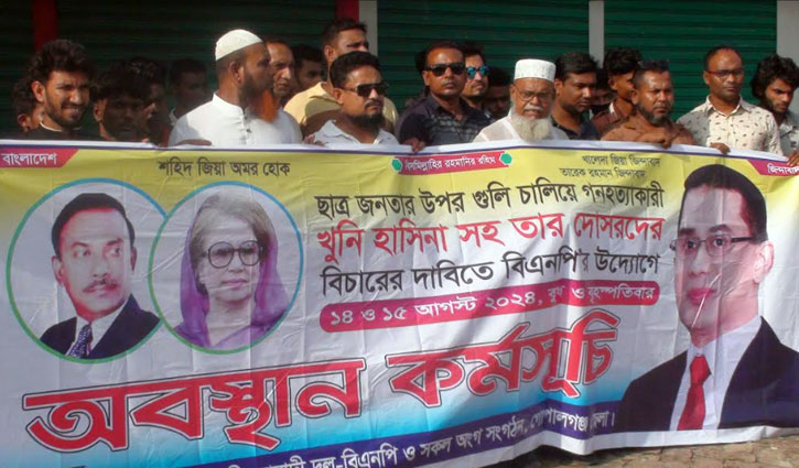 অরাজকতা সৃষ্টি, সাবেক প্রধানমন্ত্রী শেখ হাসিনা ও আওয়ামী লীগের নেতৃত্বে গণহত্যার প্রতিবাদসহ বিভিন্ন দাবিতে দেশব্যাপী অবস্থান কর্মসূচি পালন করেছে বাংলাদেশ জাতীয়তাবাদী দল- বিএনপি।