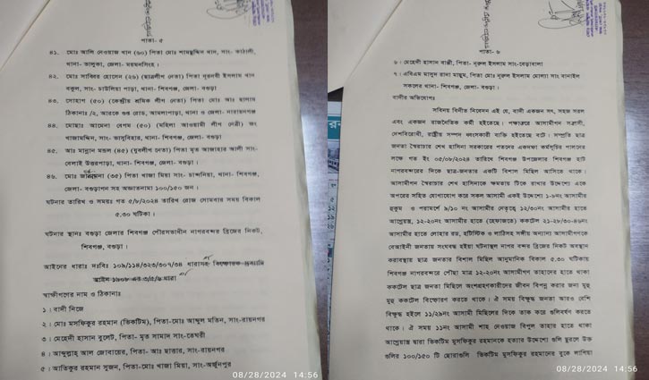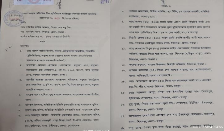 গত বুধবার (২৮ আগস্ট) বিকেলে বগুড়ার অতিরিক্ত চিফ জুডিশিয়াল ম্যাজিস্ট্রেট সুকান্ত সাহার আদালতে মামলাটি করেন বগুড়ার শিবগঞ্জ উপজেলা যুবদলের সাংগঠনিক সম্পাদক সামিউল আলিম। বিচারক শিবগঞ্জ থানার ওসিকে মামলাটি নথিভুক্ত করার নির্দেশ দিয়েছেন। শিবগঞ্জ থানার ভারপ্রাপ্ত কর্মকর্তা (ওসি) আব্দুর রউফ শুক্রবার (৩০ আগস্ট) বিষয়টি নিশ্চিত করেছেন।