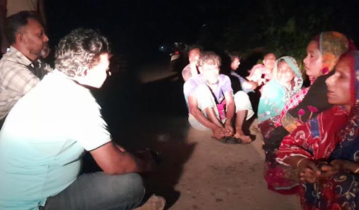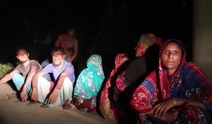 ভোর পর্যন্ত বাঁধের সড়কে বসে গল্প করে সময় কাটান পানিবন্দি মানুষরা