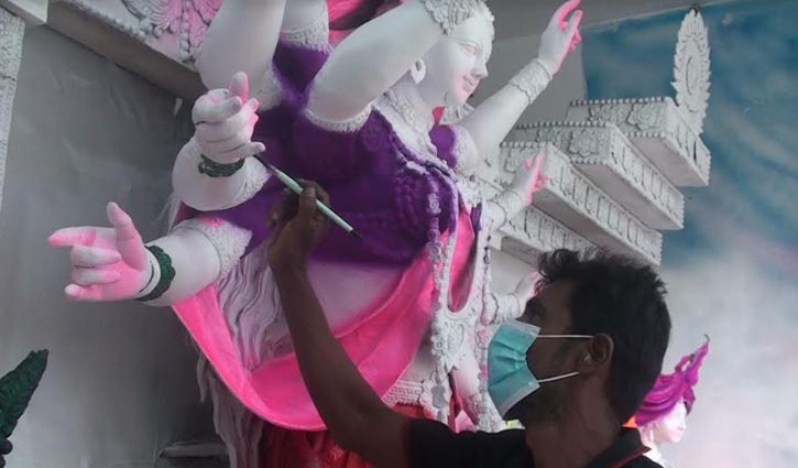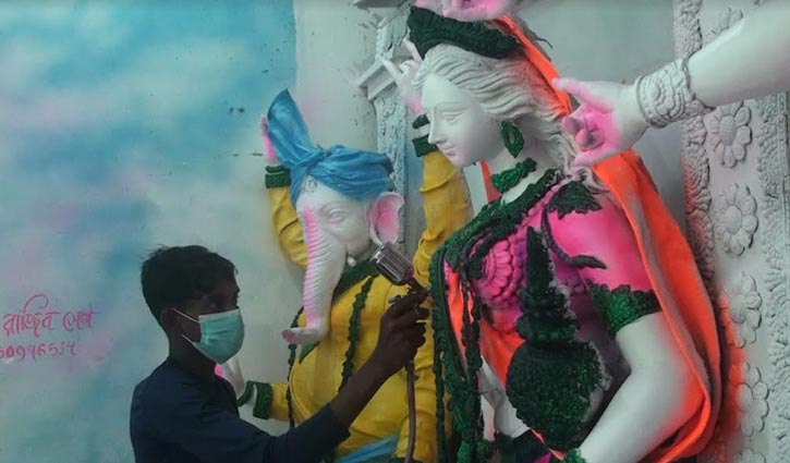 প্রতিমা শিল্পী রাজীব পাল বলেন, ‘অন্য বছরের তুলনায় এবার ভিন্ন রকম পরিবেশ চলছে। এ কারণে আমরা সেভাবে কাজ করতে পারছি না। প্রথমে কাজ ছিল না। এখন কিছু কাজ আসছে। গতবছর ১০টা মণ্ডপে কাজ করেছি। এবার ছয়টিতে করছি। মজুরি অর্ধেকে নেমেছে। আদি পেশা টিকিয়ে রাখতেই আমরা এ কাজ করে যাচ্ছি।’