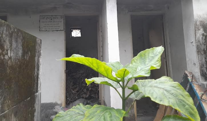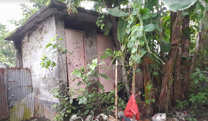 রক্ষণাবেক্ষণের অভাবে টয়লেটের সামনে বিভিন্ন আগাছা আর কলাগাছ গজিয়েছে
