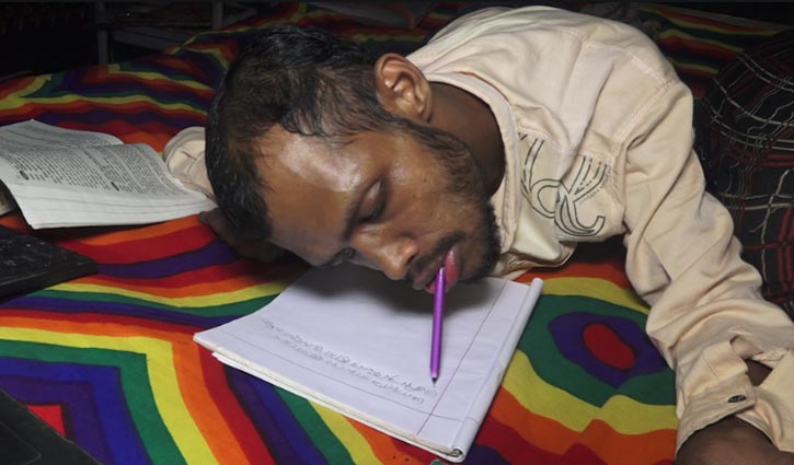 মুখ দিয়ে লিখেই বিসিএস পরীক্ষা দেওয়ার স্বপ্ন জোবায়েরের