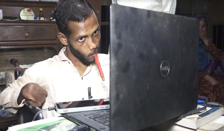 মুখ দিয়ে কলমের সাহায্যে কি-বোর্ড টিপে কম্পিউটার চালাতে পারেন জোবায়ের