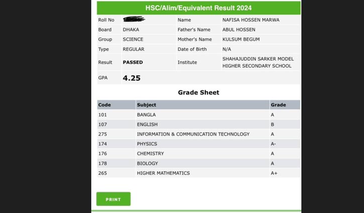 বৈষম্যবিরোধী ছাত্র আন্দোলন চলাকালে গত ৫ আগস্ট সাভারে গুলিবিদ্ধ হয়ে শহিদ হন এইচএসসি পরীক্ষার্থী নাফিসা হোসেন মারওয়া। তার স্বপ্ন ছিল ফটোগ্রাফার বা গ্রাফিক্স ডিজাইনার হওয়ার। ছোট বেলা থেকেই পড়াশোনার পাশাপাশি ছবি আঁকা ও ছবি তোলায় ছিল আগ্রহ। আজ তার এইচএসসি পরীক্ষার ফল প্রকাশিত হয়েছে। তবে, সেই রেজাল্ট জেনে যেতে পারলেন না তিনি।
