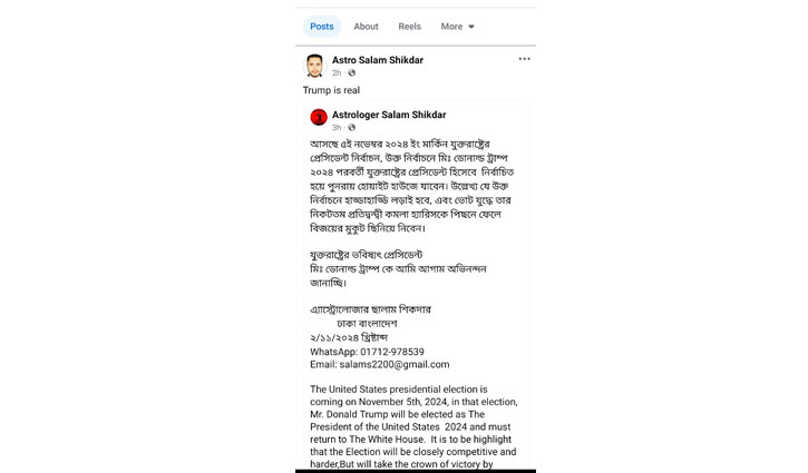 ফের যুক্তরাষ্ট্রের প্রেসিডেন্ট হচ্ছেন ট্রাম্প: বাংলাদেশি জ্যোতিষী