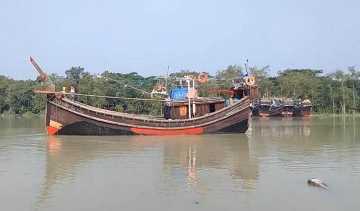 মেরামত শেষে ট্রলার নদীতে নামাচ্ছেন জেলেরা