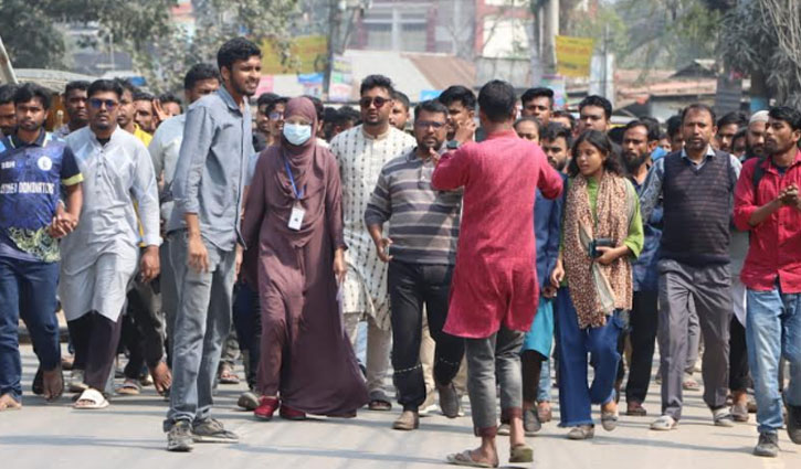 হামলার প্রতিবাদে মঙ্গলবার বৈষম্যবিরোধী ছাত্র আন্দোলন বিক্ষোভ মিছিল করে