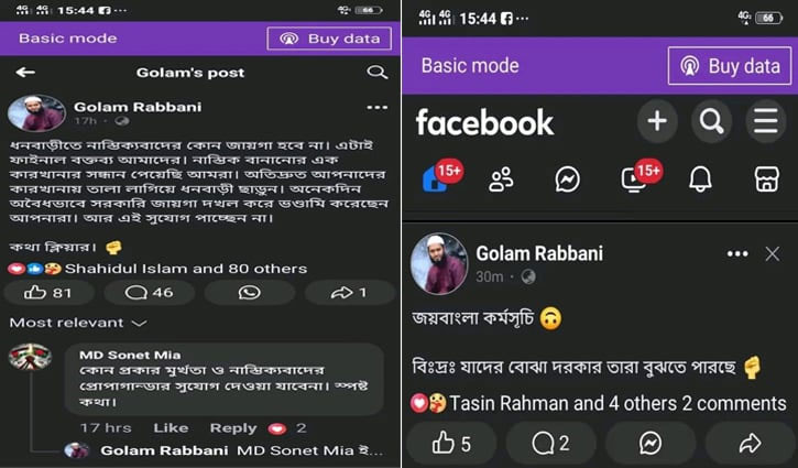 পাঠাগার থেকে বই নেওয়ার পর যুব খেলাফত মজলিসের নেতা ফেসবুকে আরেকটি পোস্ট দেন। সেখানে তিনি লেখেন, ‘জয়বাংলা কর্মসূচী। বি:দ্র: যাদের বোঝা দরকার তারা বুঝতে পারছে।’