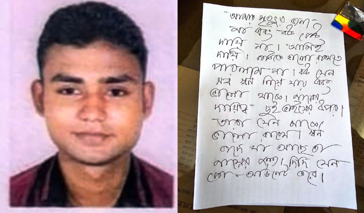 সুইসাইড নোটে পলাশ সাহা লিখেছেন, ‘‘আমার মৃত্যুর জন্য মা এবং বউ কেউ দায়ী না। আমিই দায়ী। কাউকে ভালো রাখতে পারলাম না। বউ যেন সব স্বর্ণ নিয়ে যায় এবং ভালো থাকে। মায়ের দায়িত্ব দুই ভাইয়ের ওপর। তারা যেন মাকে ভালো রাখে। স্বর্ণ বাদে যা আছে তা মায়ের জন্য। দিদি যেন কো-অর্ডিনেট করে।’’- যোগ করেন এ আর এম মোজাফফর।