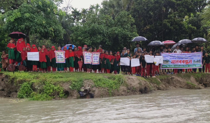 নদীভাঙন থেকে শিক্ষাপ্রতিষ্ঠান রক্ষায় মানববন্ধন
