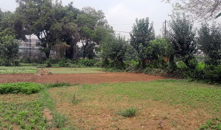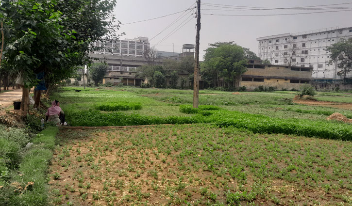 কার্যালয়ের ভেতরে বিশাল অংশ জুড়ে ফসলের মাঠের মতো আইল দিয়ে ভাগ করা। ছোট বড় বিভিন্ন আয়তনে ভাগ করা জমিতে বিভিন্ন সবজি লাগানো হয়েছে। লাল শাক, পালং শাক, পাট শাক, ঢেঁড়স, বেগুন, কলমি শাক, ঝিঙে চিচিঙ্গাসহ নানা জাতের সবজি। এসব ক্ষেতে কাজ করছেন বেশ কয়েকজন কৃষি শ্রমিক।