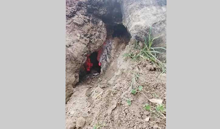 চিলমারী উপজেলার রমনা রেলস্টেশনে পুরাতন শিল-কড়াই গাছের গোড়ায় ভিতরে আগুন জ্বলতে দেখতে পায় স্থানীয়রা