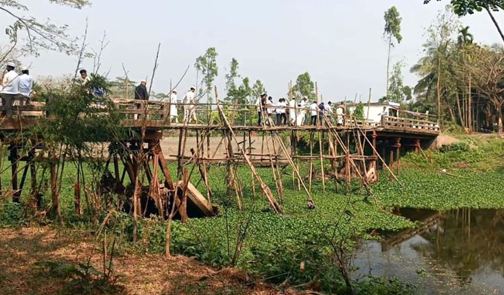 ২ বছরেও মেরামত হয়নি সেতু, বাঁশের সাঁকোয় পারাপার