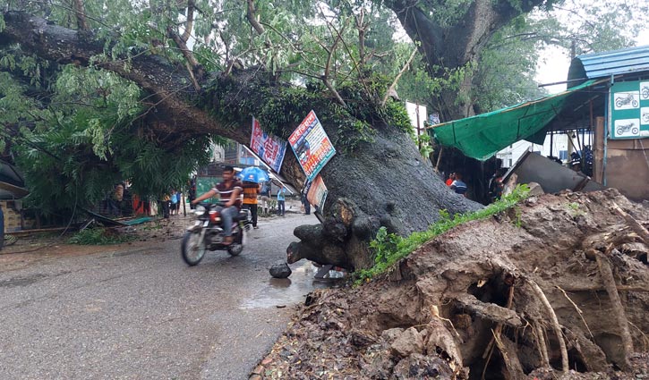 শতবর্ষী গাছ উপড়ে ভবনের ওপর, আহত ১