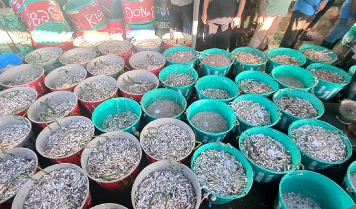 অপর জেলে সালাউদ্দিন বলেন, “হ্রদের কয়েক জায়গায় জাল ফেলেছি। ৩০০ কেজির মতো মাছ পেয়েছি। সবগুলো চাপিলা পোনা। কাচকি ও বড় মাছ খুব একটা পাইনি।”