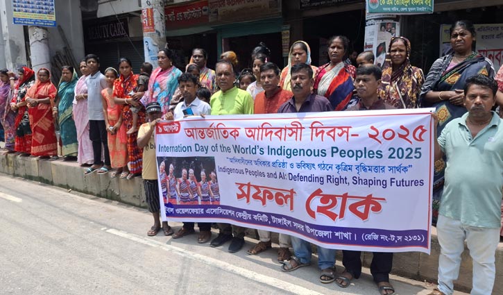 ট্রাইবাল ওয়েলফেয়ার অ্যাসোসিয়েশন টাঙ্গাইল সদর উপজেলা শাখা আদিবাসী দিবস উপলক্ষে মানববন্ধন কর্মসূচি পালন করেছে।
