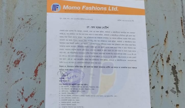 মম ফ্যাশন লিমিটেড কর্তৃপক্ষের দেওয়া নোটিশে বলা হয়েছে, গত তিন মাস ধরে কাজ না থাকায় শ্রমিক, কর্মকর্তা ও কর্মচারীদের নিয়মিত ছুটি দেওয়া হয়েছে। এই প্রতিষ্ঠানের বন্ড লাইসেন্স সম্পর্কিত বড় ধরনের জটিলতা হওয়ায় সব প্রকার আমদানি বন্ধ আছে। যার সমাধান সময়সাপেক্ষ। লাইসেন্স সংক্রান্ত জটিলতার কারণে ক্রেতারাও কাজ দিতে অপারগতা প্রকাশ করেছেন। এছাড়া অন্য কোনো কাজও পাওয়া যায়নি। এর পরিপ্রেক্ষিতে বাংলাদেশ শ্রম আইন ২০০৬ ইং এর ১২ এবং ১৬ ধারা মোতাবেক ২৬ আগস্ট ২০২৫ থেকে ৮ অক্টোবর পর্যন্ত কারখানা লে-অফ ঘোষণা করা হলো। এই সময়ে প্রতিষ্ঠানের সব শ্রমিক, কর্মকর্তা ও কর্মচারীদের বাংলাদেশ শ্রম আইন ২০০৯ এর ধারা ১৬ মোতাবেক ক্ষতিপূরণ দেওয়া হবে। এছাড়া এরমধ্যে পরিস্থিতি উন্নতি হলে কারখানার নোটিশের মাধ্যমে জানিয়ে দেওয়া হবে।