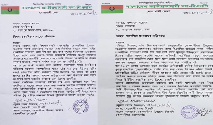 প্রকাশিত বিবৃতিতে দেখা যায়, নোয়াখালী জেলা বিএনপির প্যাডে বিভিন্ন গণমাধ্যমে নিজে স্বাক্ষর করে চাঁদাবাজির সংবাদের প্রতিবাদ পাঠিয়েছেন নুরুল আলম সিকদার। তিনি নিজেকে বিএনপির তৃণমূলের নেতা হিসেবে নির্দোষ দাবি করেন।