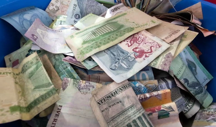 দানবাক্সে পাওয়া বিদেশি মুদ্রা।