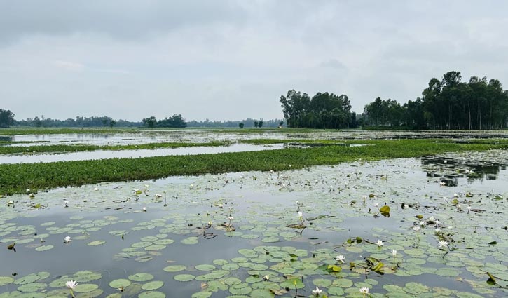 বিলে মুগ্ধতা ছড়াচ্ছে সাদা শাপলা