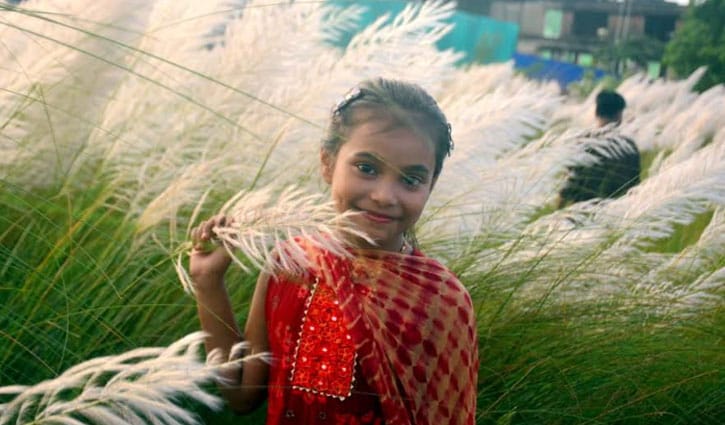 শিশুরাও কাশফুলের সৌন্দর্য উপভোগ করছে।