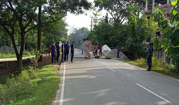 টায়ার জ্বালিয়ে সড়ক অবরোধ করেন বিক্ষোভকারীরা