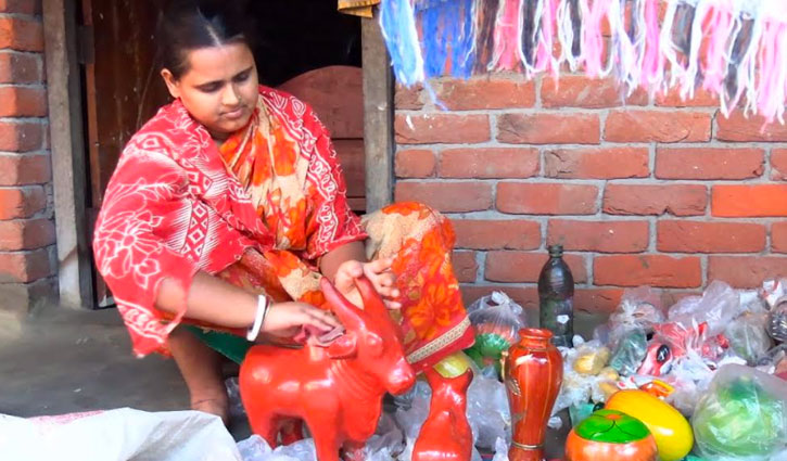 দুর্গাপূজার মেলাকে কেন্দ্র করে হরেক রকম মাটির খেলনা তৈরির কাজ চলছে
