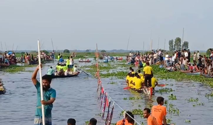 নৌকা বাইচ দেখতে আড়িয়াল বিলে হাজারো জনতার ঢল