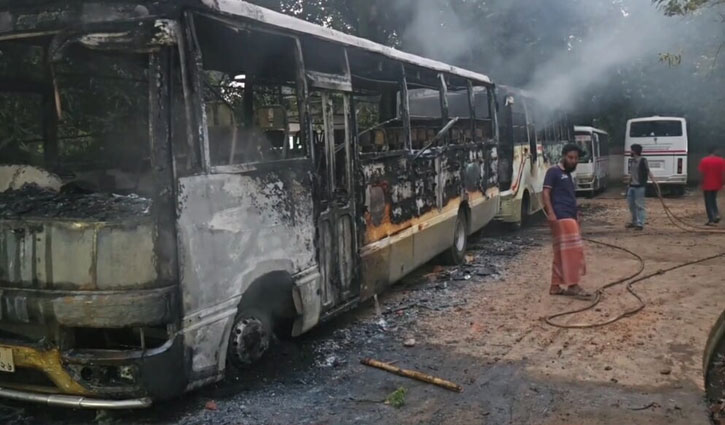 সোমবার (২৭ অক্টোবর) সকালে সাভারের বিরুলিয়া এলাকায় সিটি ইউনিভার্সিটির ক্যাম্পাসের ফটকে দেখা যায় আগুনে পোড়ার দৃশ্য। বাইরে ছড়িয়ে ছিটিয়ে রয়েছে কাঁচ, কাঠসহ ভাঙা বিভিন্ন জিনিসপত্র। ভাঙচুর করা অবস্থায় ছিল পাঁচটি যানবাহন। অগ্নিসংযোগ করা হয়েছে অন্তত তিনটি বাস, পাঁচটি মাইক্রোবাস ও একটি প্রাইভেটকারে।