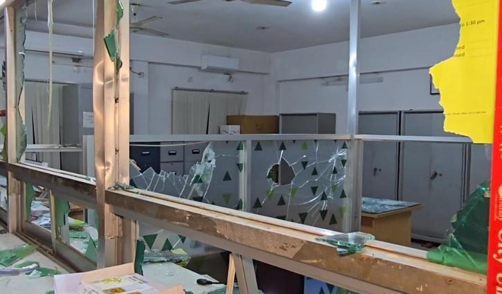 বিশ্ববিদ্যালয়ের একাডেমিক ভবনেও চালানো হয়েছে ধ্বংসযজ্ঞ। পুরো ভবনের জানালার থাই গ্লাস ভাঙা অবস্থায় দেখা যায়। ভেতরের প্রায় প্রতিটি ফ্লোরে ছড়িয়ে ছিটিয়ে থাকতে দেখা যায় কাগজপত্র ও ভাঙা আসবাবপত্র।