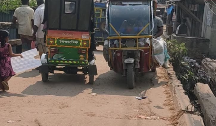 ঝঁকিপূর্ণ সেতুর ওপর দিয়ে যাত্রী নিয়ে যাচ্ছে অটোরিকশা