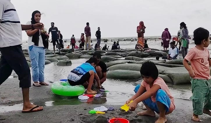 একদিনের ছুটিতে পরিবার ও স্বজনদের নিয়ে অনেকেই বেড়াতে এসেছেন কুয়াকাটা সমুদ্র সৈকতে