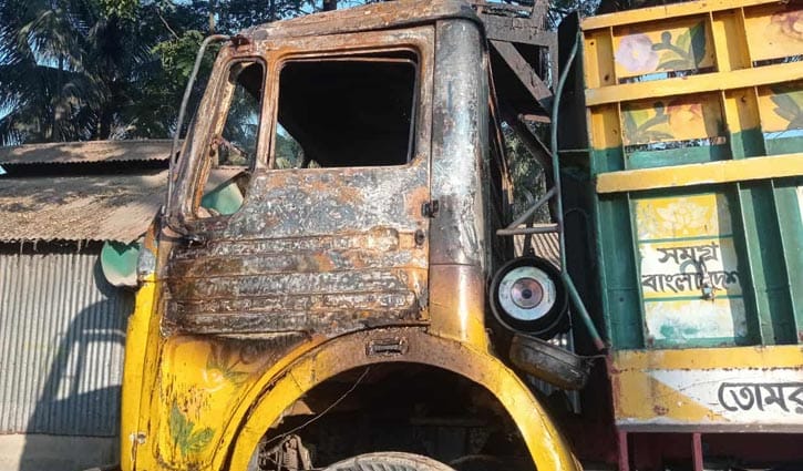 আগুনে ক্ষতিগ্রস্ত একটি ট্রাক