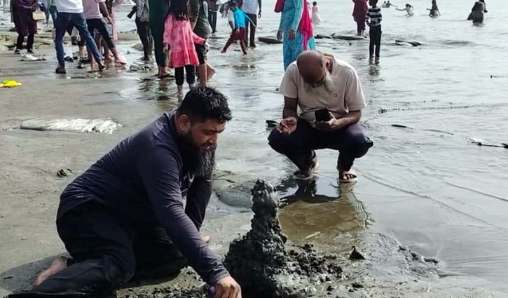 পর্যটকে পরিপূর্ণ কুয়াকাটা সমুদ্র সৈকত।