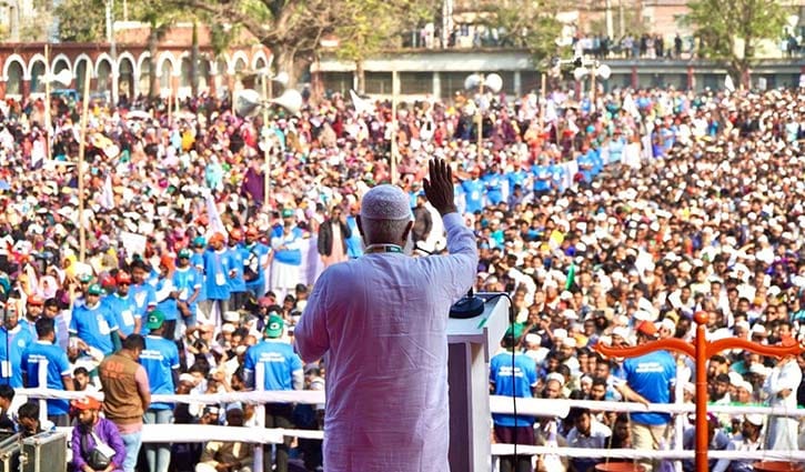 বৃহস্পতিবার (৫ ফেব্রুয়ারি) বিকেলে রাজশাহীর ঐতিহাসিক মাদ্রাসা মাঠে ১১ দলীয় জোটের উদ্যোগে আয়োজিত নির্বাচনি জনসভায় প্রধান অতিথির বক্তব্যে তিনি এ কথা বলেন। এর আগে দুপুরে তিনি গোদাগাড়ী উপজেলার মহিশালবাড়ি ডিগ্রি কলেজ মাঠে জনসভায় বক্তব্য দেন।