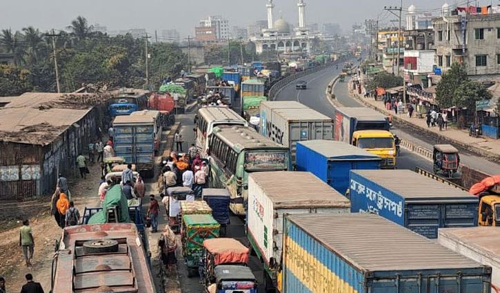 গাজীপুরে দুই মহাসড়কে গাড়ির ধীরগতি, থেমে থেমে যানজট