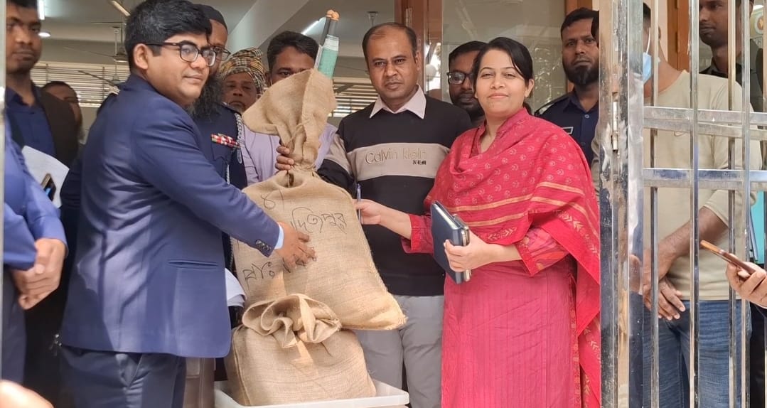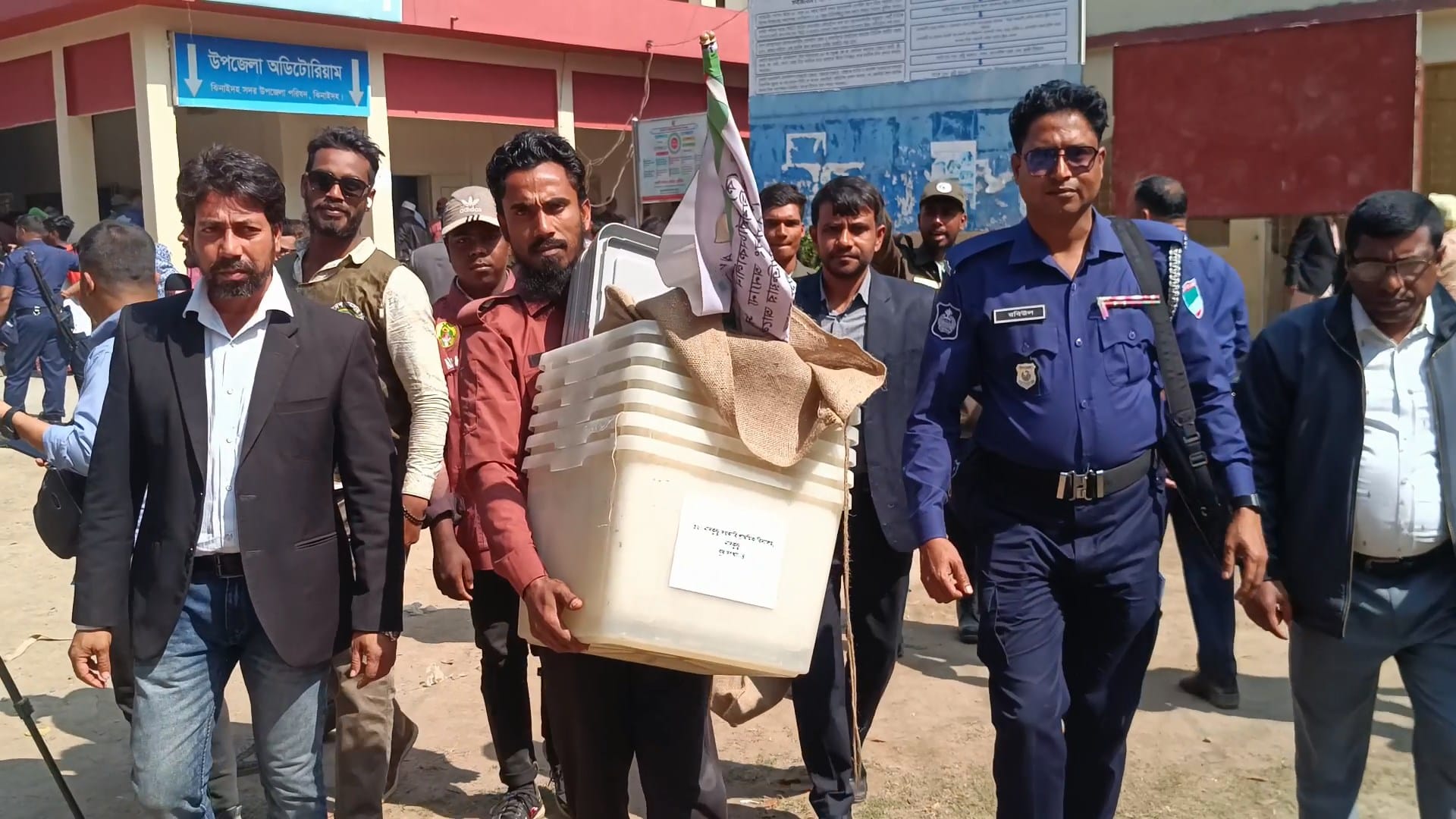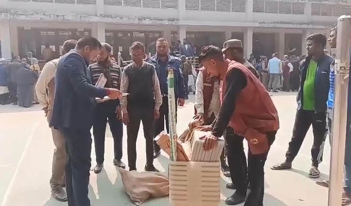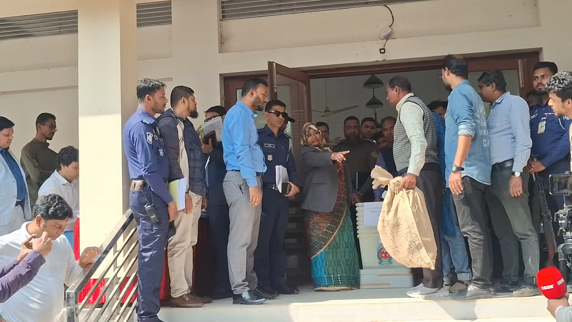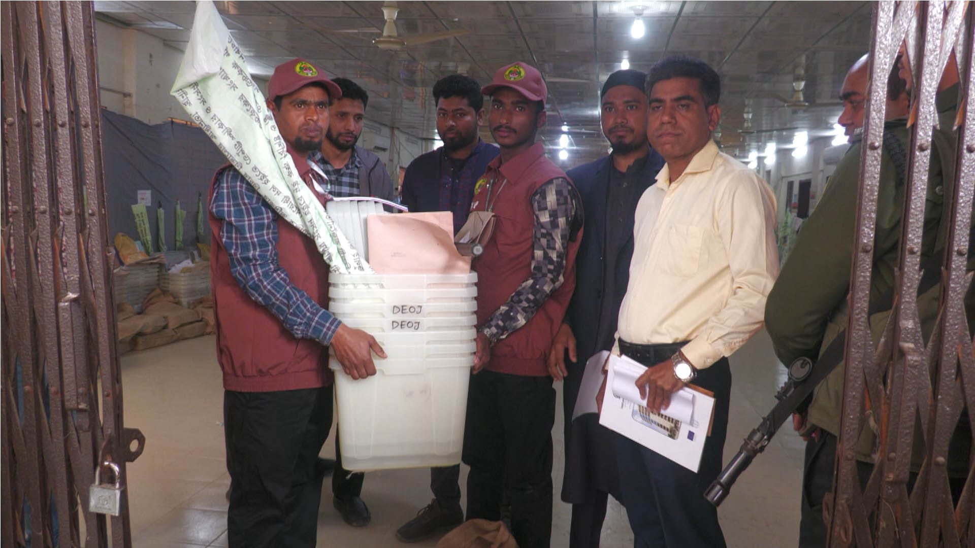 ঢাকা-২ আসনের সহকারী রিটার্নিং কর্মকর্তার কার্যালয় স্বচ্ছ ব্যালট বাক্স ভোটকেন্দ্রে নেয়া হচ্ছে