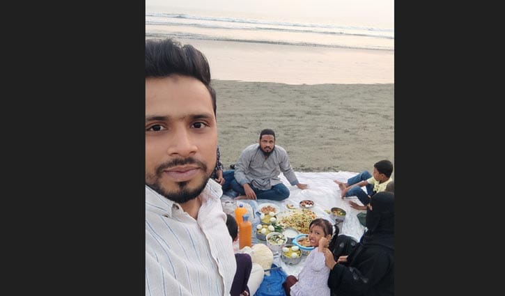 পরিবার নিয়ে সৈকতপাড়ে ইফতারের আগ মুহূর্তে সেলফি তুলছেন এক যুবক